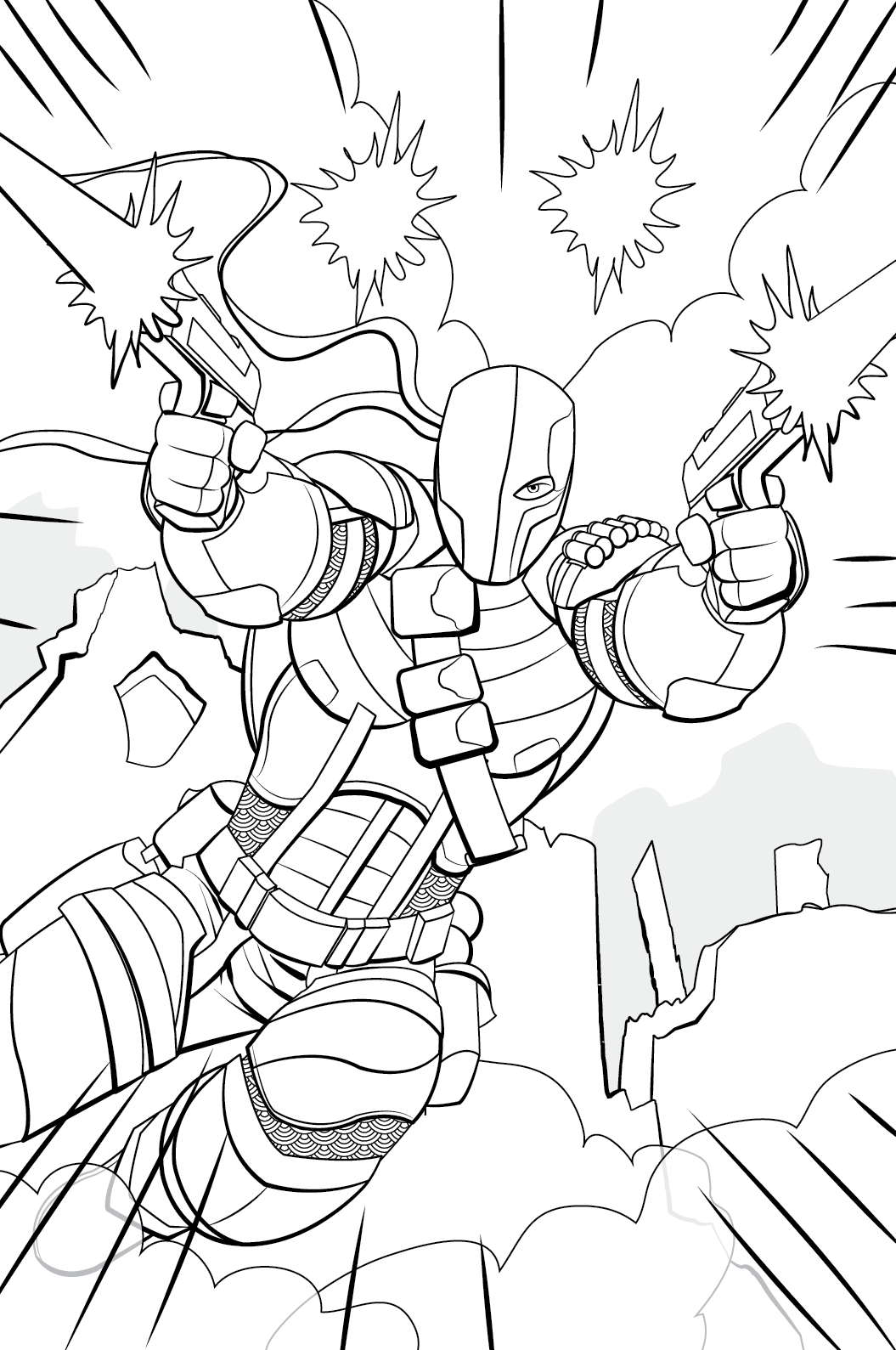 Deathstroke has become one of my favorite DC characters. Whether he's an anti-hero or a villain I find him interesting. I especially like the treatment of him in Batman: Arkham Origins. He gives ole Bats a run for his money. I recently was gifted the Hot Toys collectible. Incredible sculpt, the detail is amazing. I really love the overall look, so I used it for this illustration. How about you, how do you feel about the mercenary assassin that is Deathstroke?