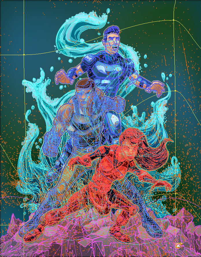 Commission piece. The client needed her three characters designed and added to a single illustration. She had a document with descriptions of each character, but no specifics on the costume design. So I was allowed to create the designs that I thought worked well for each character. This was created in Adobe Illustrator.