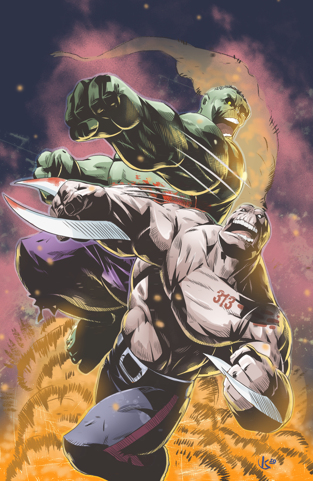 The Hulk battling one of the characters I created in my youth, Diecast.