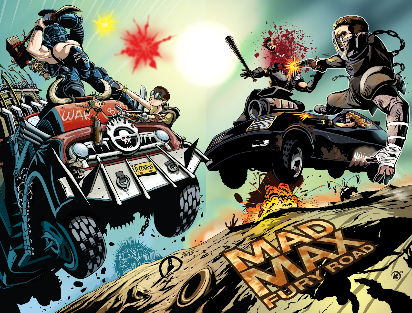 I had a chance to work on this mashup with Joshua Janes at Keep Turning. It's a submission for a fan art book of Mad Max: Fury Road . I've posted the spread with Josh's art on the left side and mine on the right. Also gave you a better look at my side of the piece. We shared some of the same color palette but mostly just winged it. I had a blast with this illustration and sorta hated to see it end. Oh and here's what the piece is for, http://witnessmeartbook.tumblr.com Deadline ends at midnight tonight so if you hurry you can get in just under the wire with your own submission. Thanks for looking. Created in Adobe Illustrator